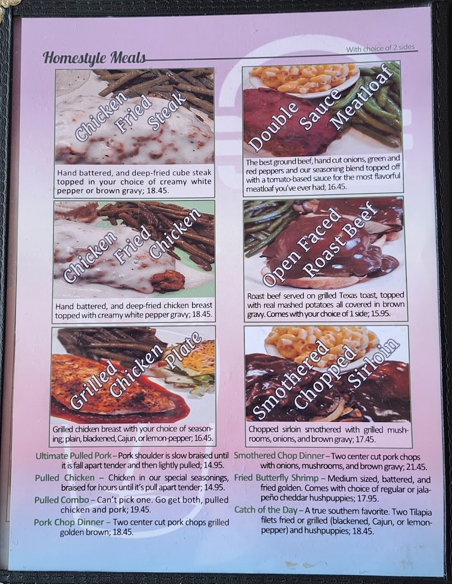 The menu is impressively diverse for such a quaint spot, featuring standout dishes like the mouthwatering meatloaf, country fried steak, and the highly praised US farm-raised catfish. Each plate reflects a commitment to flavor and quality, as confirmed by guests who revel in the comforting atmosphere and attentive service.