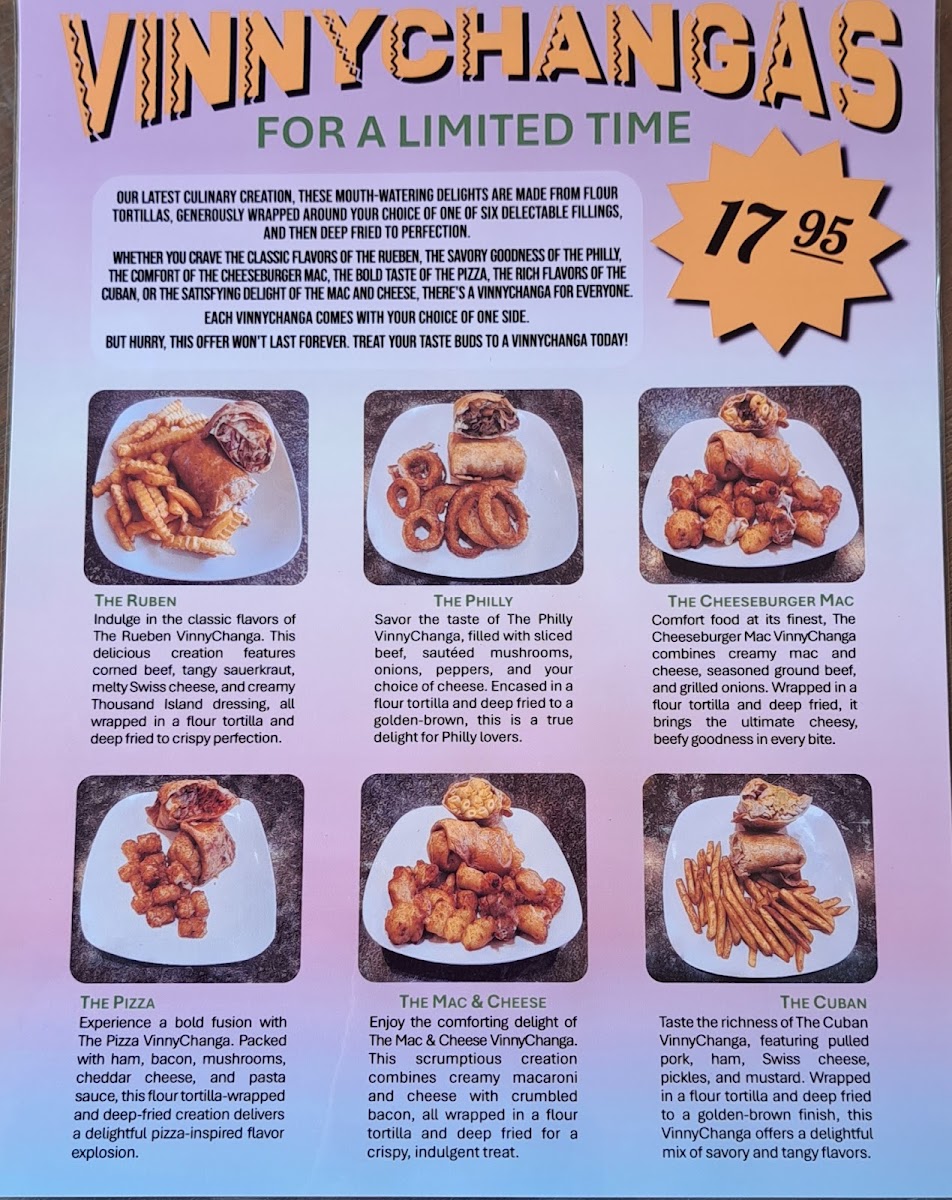 Don't miss their famous ribeye topped with sautéed mushrooms or the delightful starters like cheese curds and mozzarella sticks. Vinnys truly embodies the essence of down-home dining, combining hearty meals with friendly service that invites you back time and again.